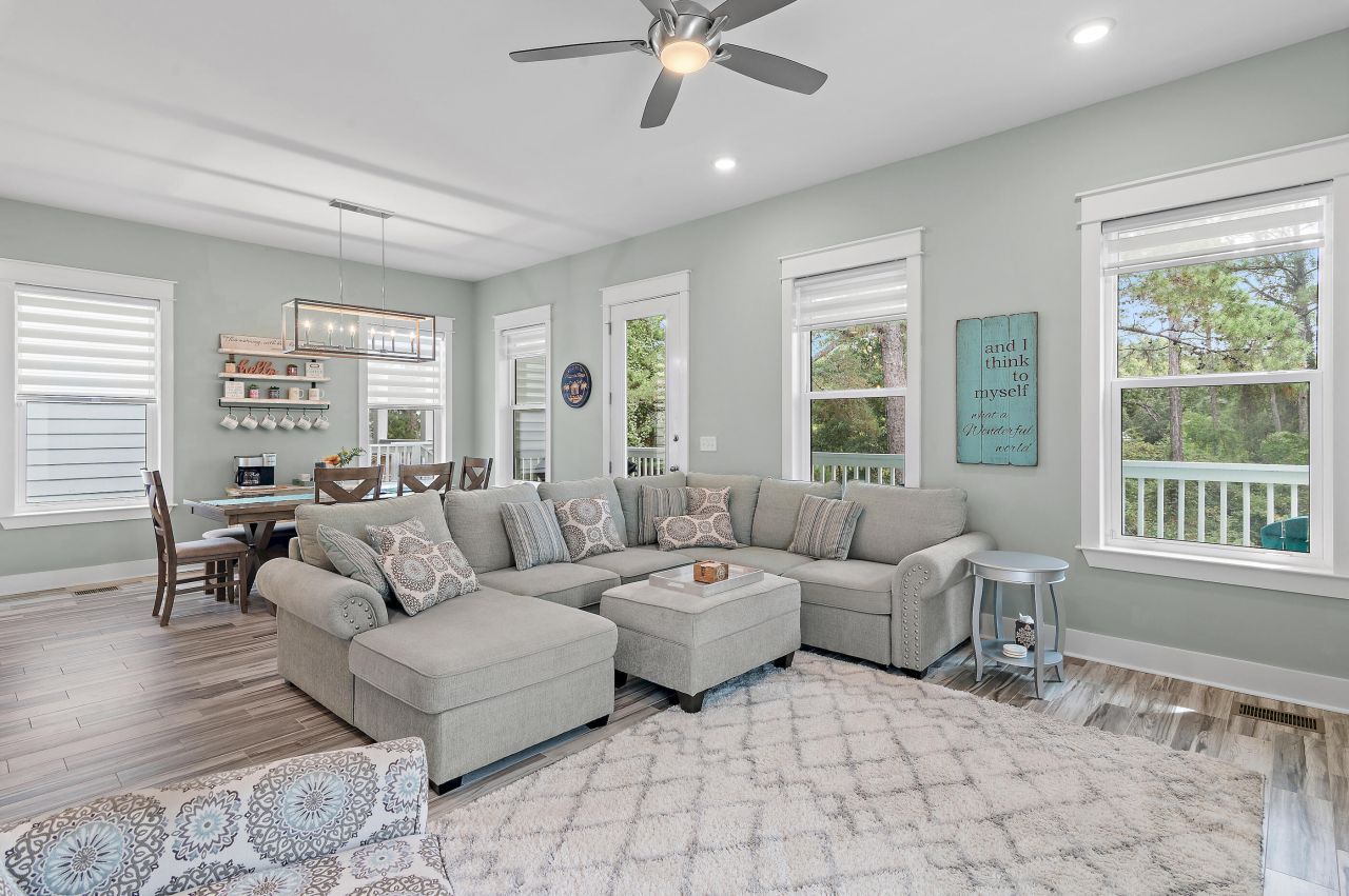 Welcome to 52 Charming Way, a beautifully maintained coastal retreat just steps from the sugar-white sands of the Gulf. Perfectly tucked away in a highly desirable 30A location, this home offers the best of beach life ? walkable to public beach access and the popular Stinky's Fish Camp, where you can enjoy fresh seafood and stunning sunsets any night of the week.From the moment you arrive, you'll feel right at home. The inviting, open-concept layout is filled with natural light, creating a comfortable space for gathering with family and friends. Additionally, a spacious first-floor bedroom and full bath add flexibility and convenience for guests. The home comes fully furnished, so you can move right in or start enjoying rental income immediately. A street-legal LSV golf cart is also included, making trips to the beach, neighborhood shops, and restaurants a fun and effortless part of everyday life.Outdoor living is a highlight here, with two spacious back porches overlooking a serene, protected preserve area, perfect for morning coffee, afternoon naps, or unwinding after a day in the sun. Built on a block foundation with additional storage, the home seamlessly combines coastal charm with practical features. The garage, along with three extra parking spaces, makes hosting guests or storing beach gear a breeze.Every detail has been thoughtfully cared for, including two brand-new HVAC units installed in 2025 to keep you cool and comfortable year-round. Whether you're searching for a turnkey vacation home, a rental-ready investment, or a full-time beach retreat, this property is ready to welcome you.Life at 52 Charming Way is all about slowing down, soaking up the sun, and enjoying everything the 30A lifestyle has to offer. With the beach, dining, and coastal charm all just a short walk away, this home is the perfect place to create memories for years to come.