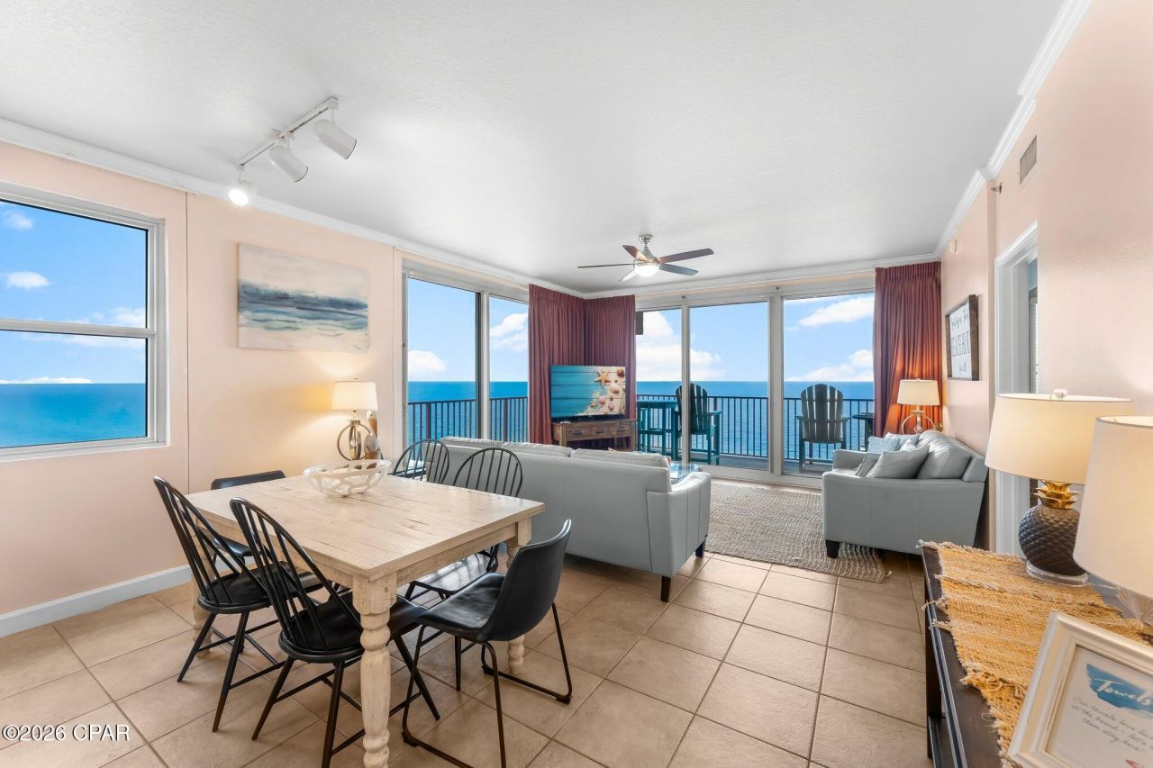 Spacious 3BR/3BA gulf front wrap around condo at Shores of Panama, one of Panama City Beach's most popular Gulf-front resorts. Unit 2231 features an open-concept living and dining area, a functional kitchen with ample cabinetry, and generously sized bedrooms with three full bathrooms?ideal for full-time living, a second home, or investment use. Enjoy resort-style amenities including a lagoon-style pool, indoor heated pool, hot tub, fitness center, on-site bar & grill, and covered parking. Centrally located in the heart of PCB, just minutes from dining, shopping, and entertainment. This condo comes with its own deeded storage unit (very large) outside the condo with electricity and refrigerator. Also comes with it's own very valuable parking spot on floor 2.